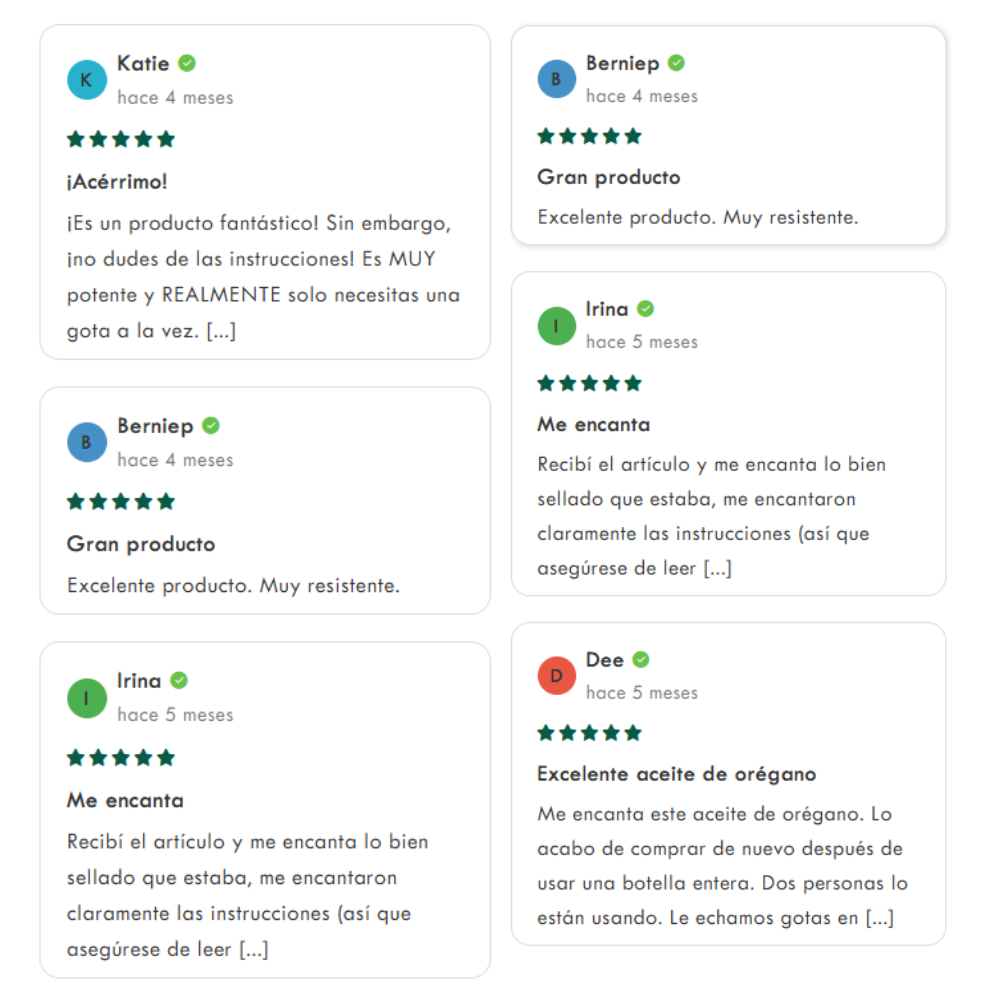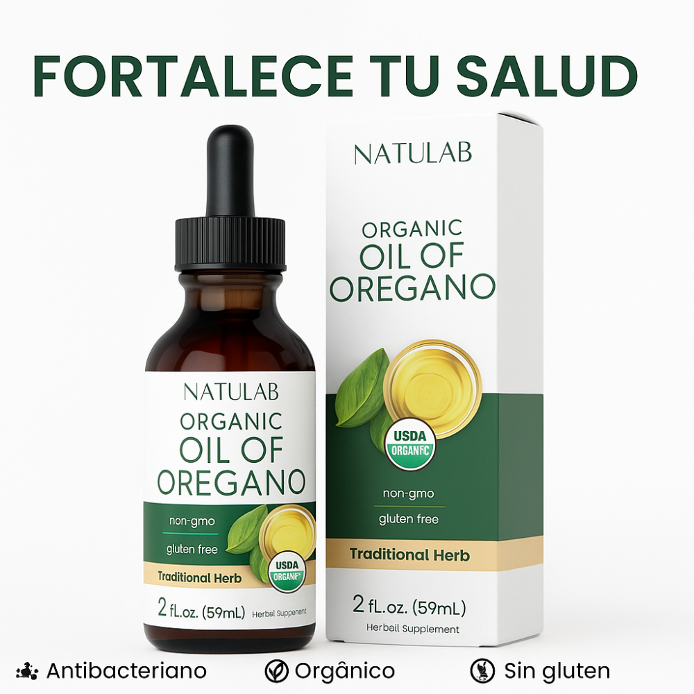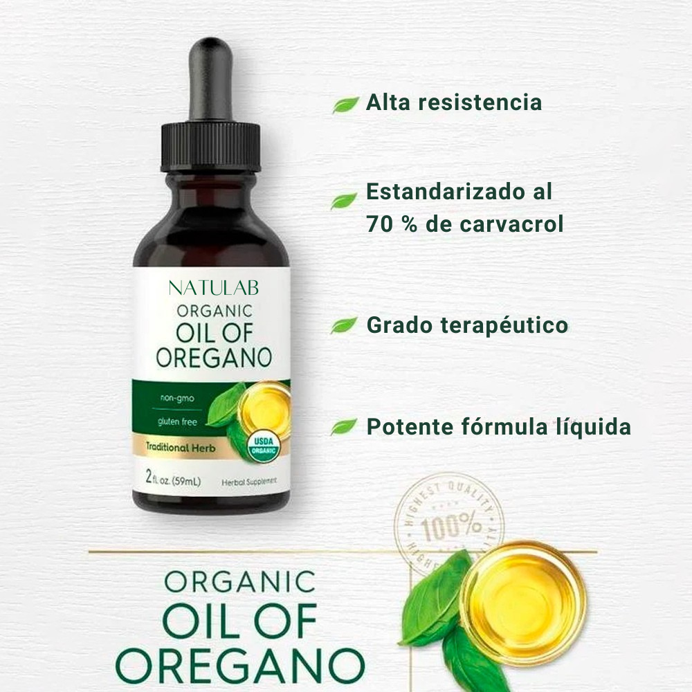 Organic Oil of Oregano funciona como un poderoso escudo natural para tu cuerpo gracias a su alta concentración de carvacrol al 70%, el componente activo con mayor eficacia antimicrobiana presente en el orégano. Este compuesto actúa directamente en tu organismo ayudando a fortalecer el sistema inmunológico, combatir infecciones, reducir la inflamación y mejorar la salud digestiva.