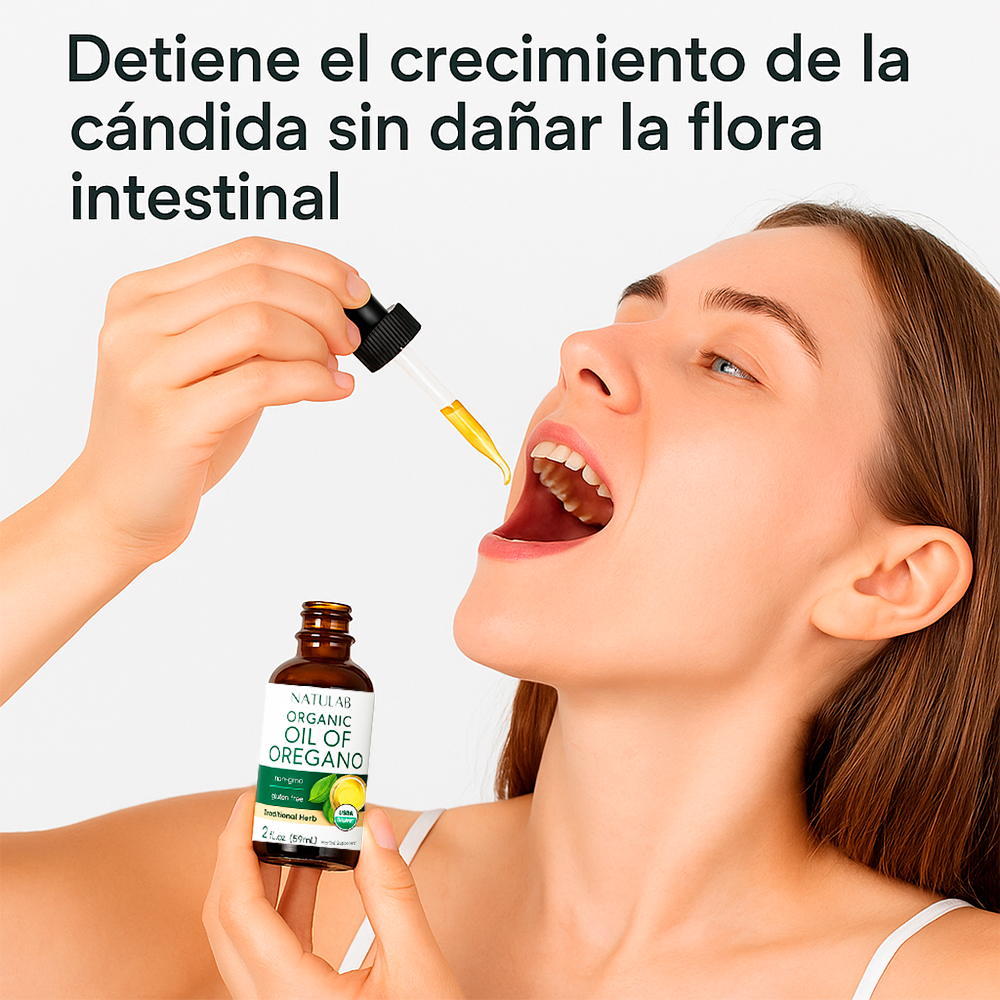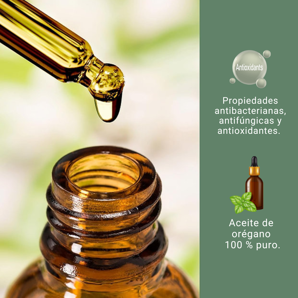 Cuando se consume en gotas, el aceite ayuda a eliminar bacterias, virus, hongos y parásitos, sin afectar la flora intestinal buena, actuando como un antibiótico natural, pero sin los efectos secundarios de los fármacos tradicionales.