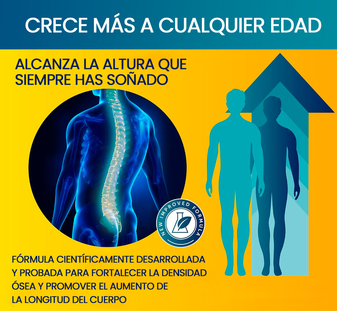 Es un estimulante natural de la hormona del crecimiento. Su fórmula avanzada  ayuda al crecimiento y la fuerza ósea. Es perfecto para niños, adolescentes y adultos: nuestro potenciador de crecimiento ayuda a ser más alto a cualquier edad. ¡Prueba ahora y ve los increíbles resultados por ti mismo!