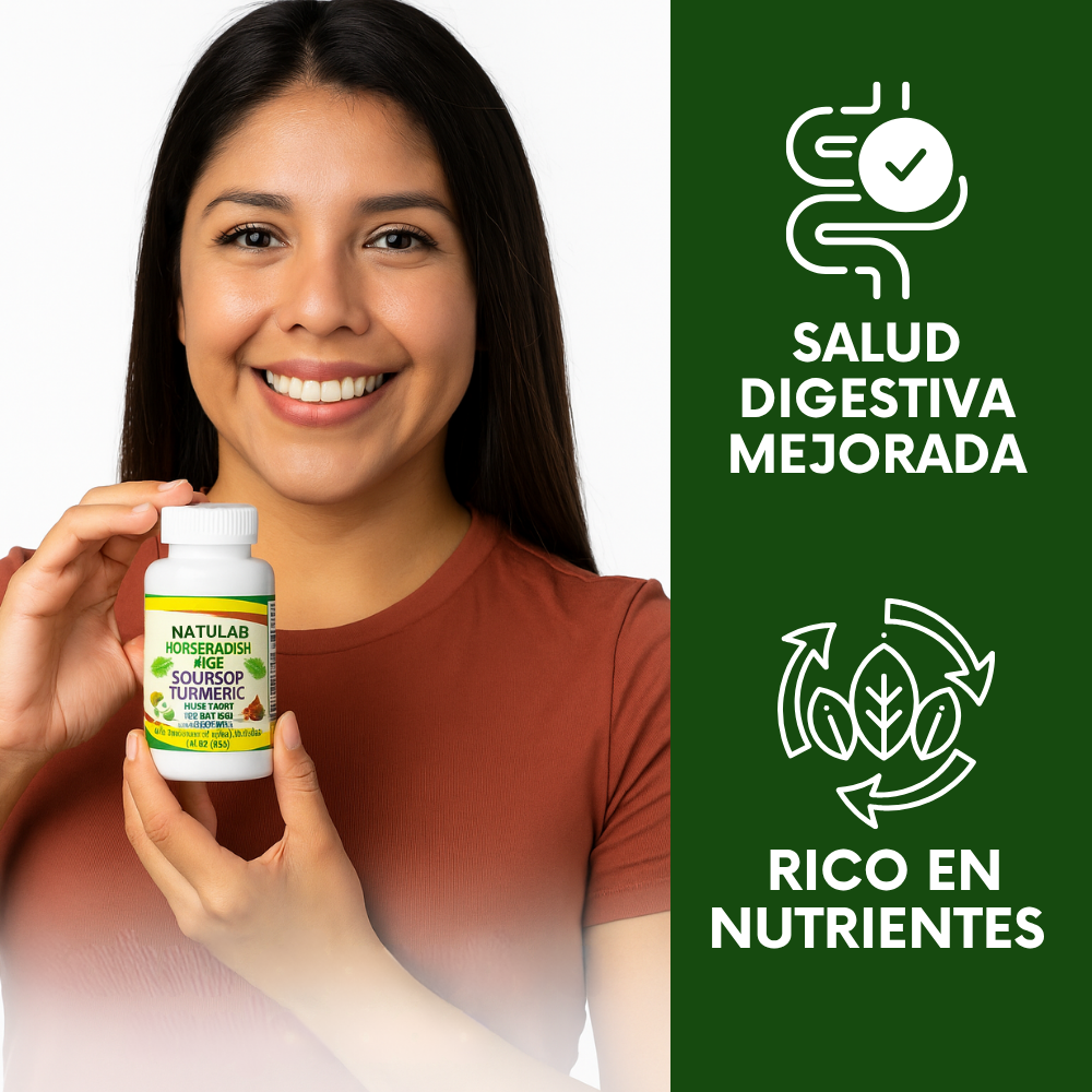Estos ingredientes apoyan la digestión y el funcionamiento hepático, ayudando al cuerpo a eliminar toxinas y mejorar la absorción de nutrientes.
