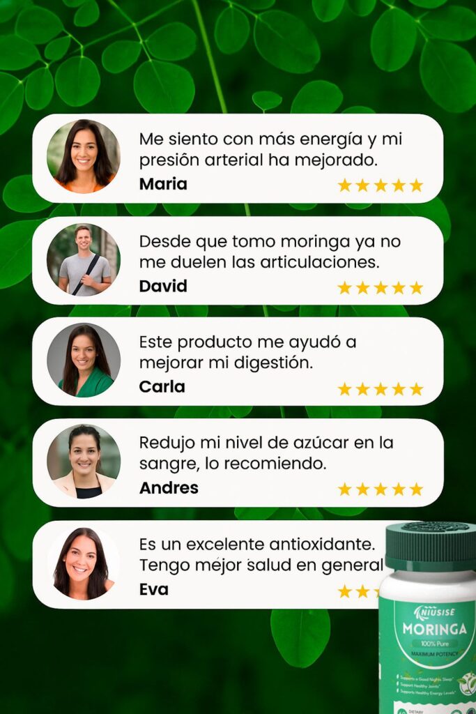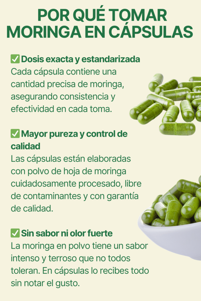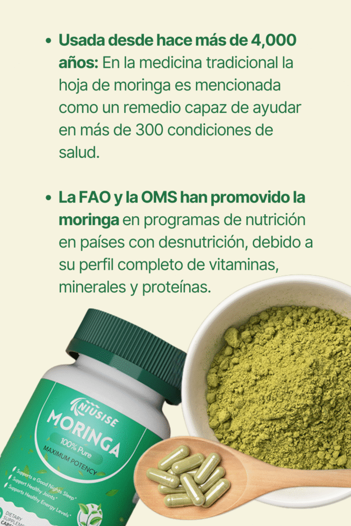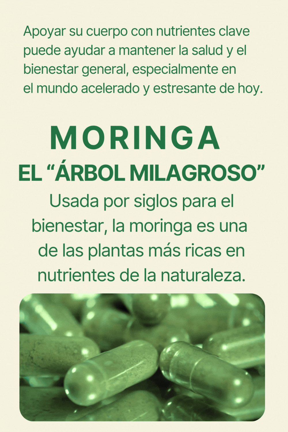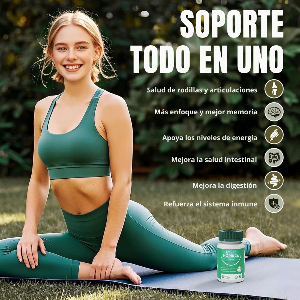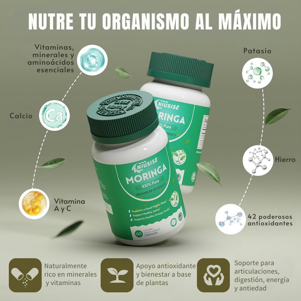 Las cápsulas de MORINGA® funcionan como un potente superalimento natural que ayuda a aumentar los niveles de energía, fortalecer el sistema inmunológico, mejorar la digestión gracias a su alto contenido en fibra, equilibrar los niveles de azúcar en sangre y promover la salud de la piel, el cabello y las articulaciones.